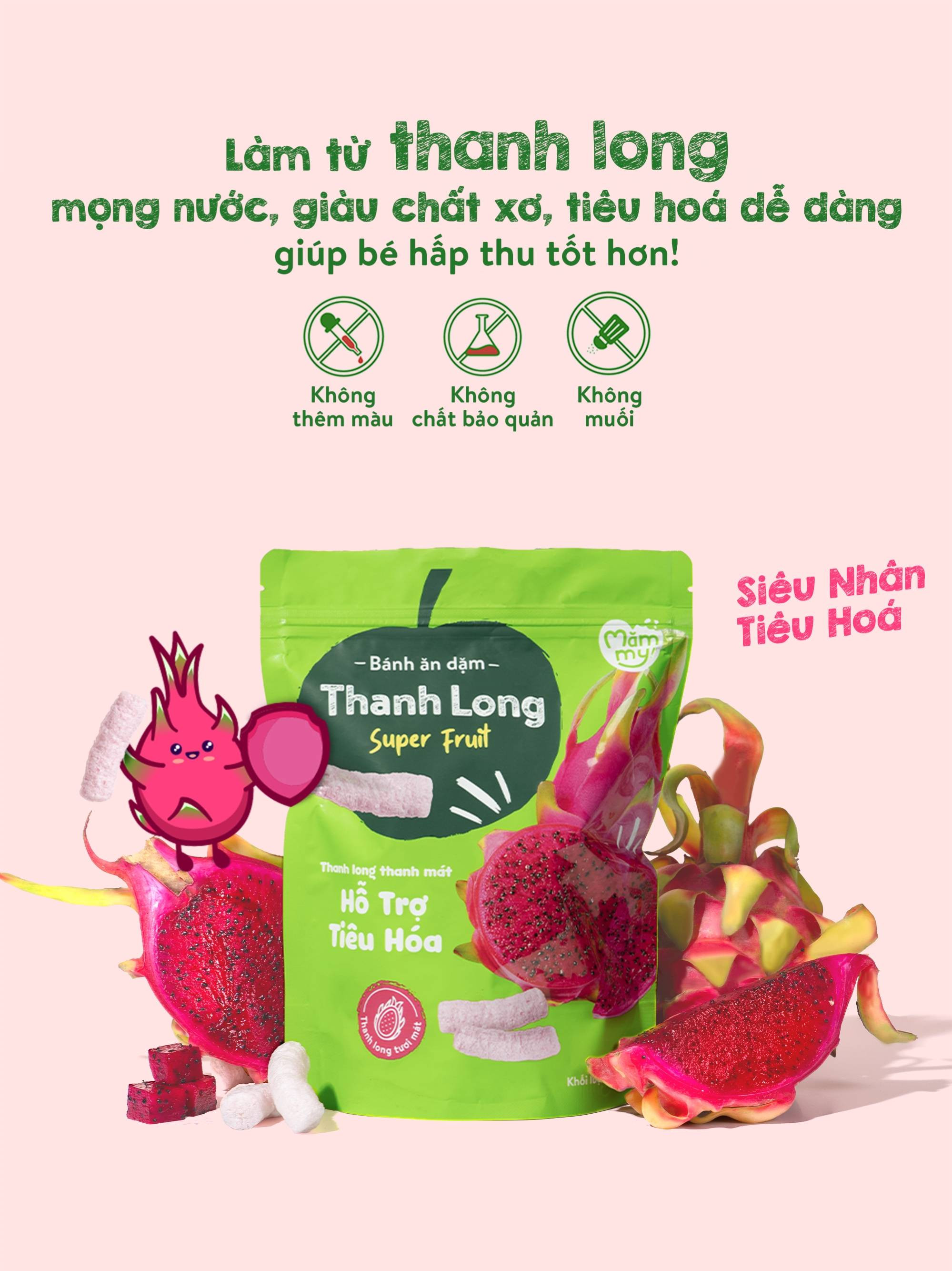Tăng cường đề kháng: Chiết xuất từ thanh long chín mọng giàu Vitamin C và chất chống oxy hóa, hỗ trợ hệ miễn dịch của bé khỏe mạnh.